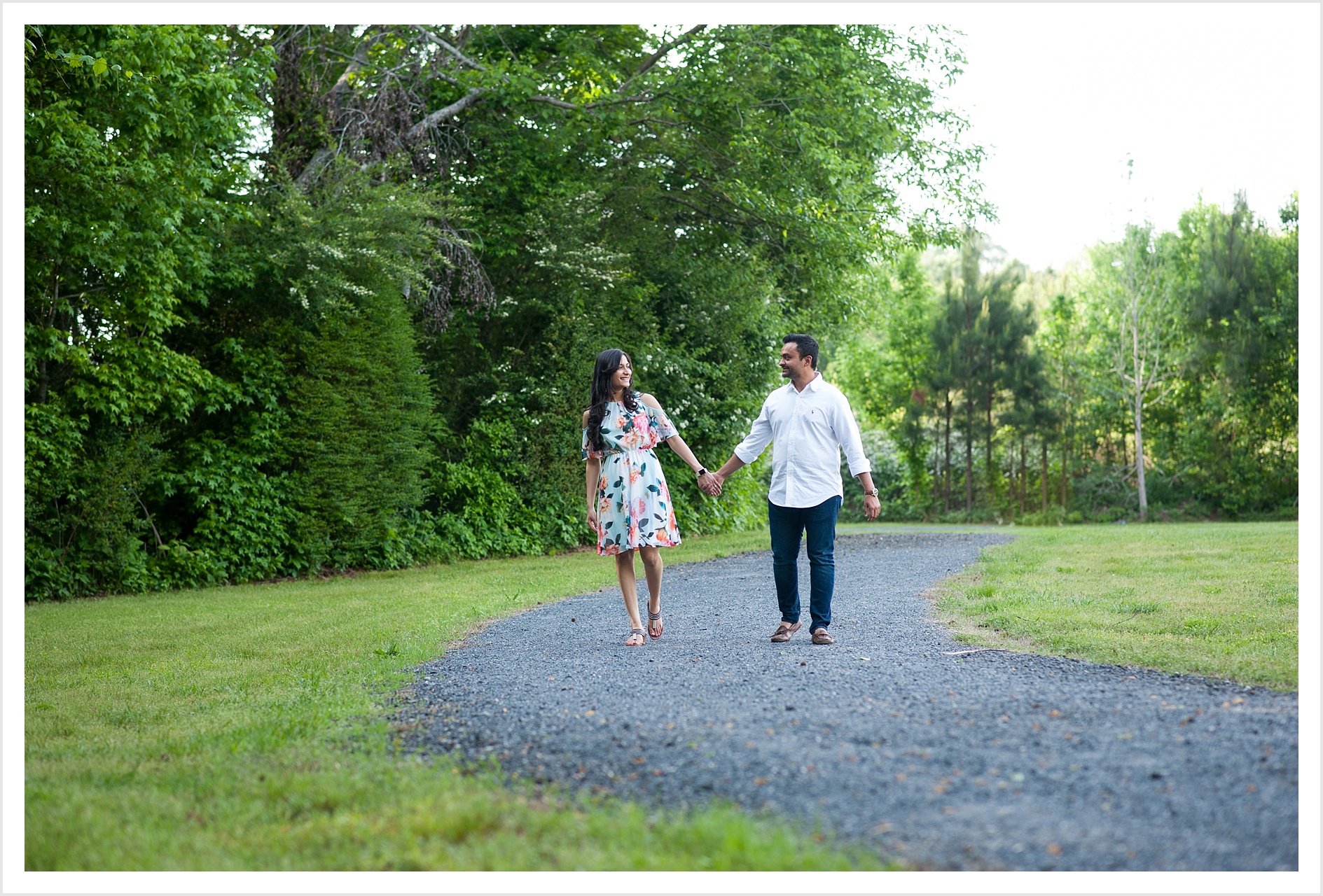 I was excited to spend the afternoon hanging out in Roswell with Henish and Beena, who were recently engaged. They are doing the whole long distance engagement thing, which I can relate to because my husband and I also did the same while we were dating. It’s not always easy, but it does make the time you get to spend together extra special, since it doesn’t happen as often. Henish was only in from California for the weekend, so they spent time celebrating their engagement with family and friends, and then came to hang out with me on the park. We had to work around the hundred or so prom kids that showed up at the same time we did, but once we got to a more private area of the park, we had fun laughing and enjoying the beautiful Spring weather! Here is a peek at a few of my favorites from their engagement session.